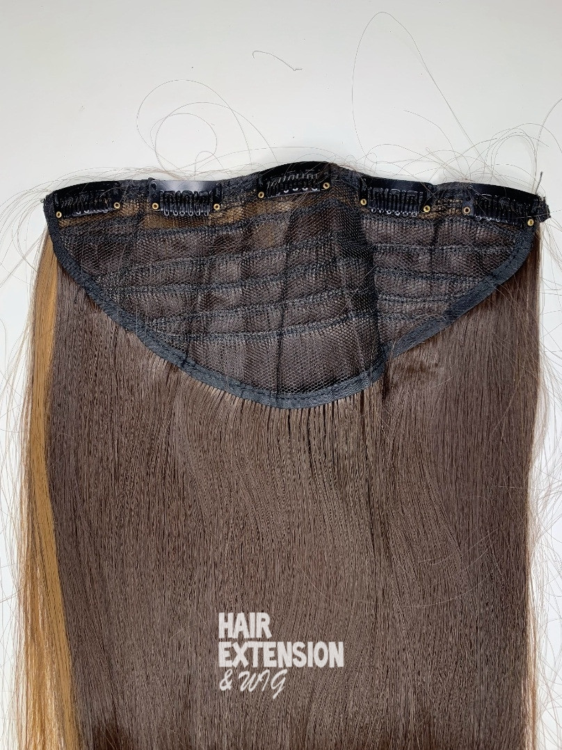 The elegant extension with a streamlined shape and perfect length gives you a perfect and natural look with ready-to-wear pieces. You will install it in minutes without any effect on your natural hair The color Dark brown with light brown highlights mixed color betwen dark brown and light brown