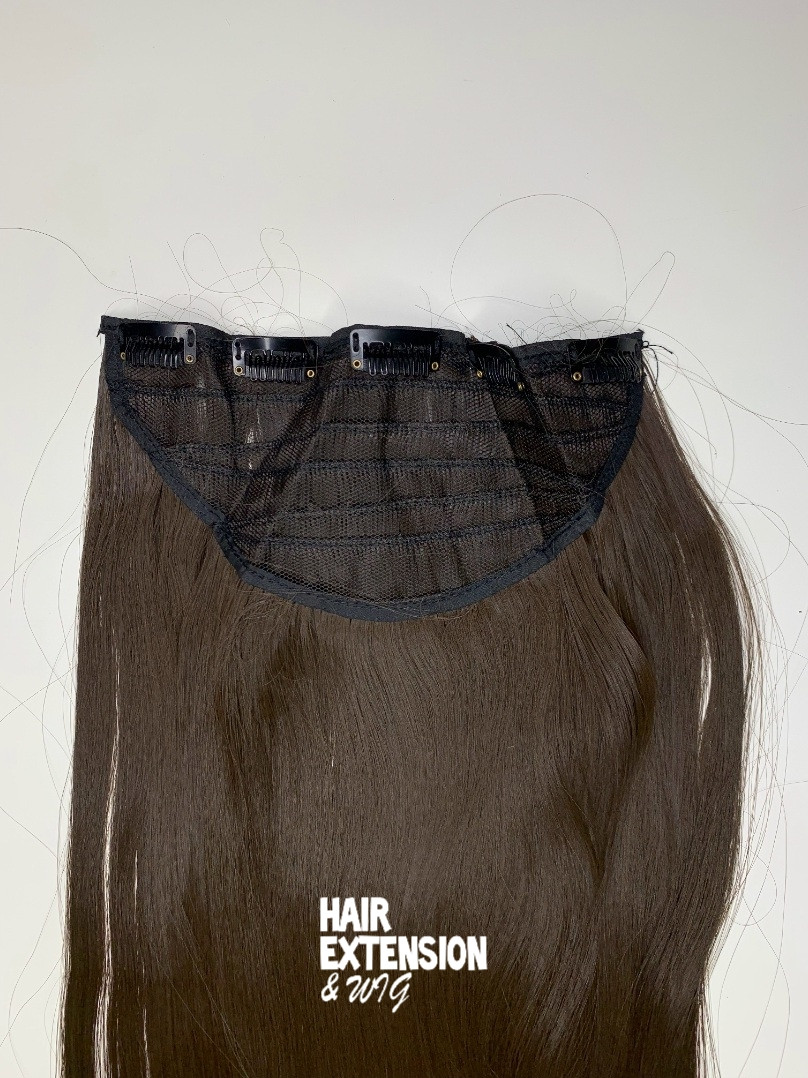 Straight hair extensions with a streamlined shape and a perfect length that will give you a perfect and natural look with ready-made clips. You will install it in minutes without any effect on your natural hair. The dark brown color is one of the darkest shades of dark brown, giving you a reddish tint in the lighting and the sun.